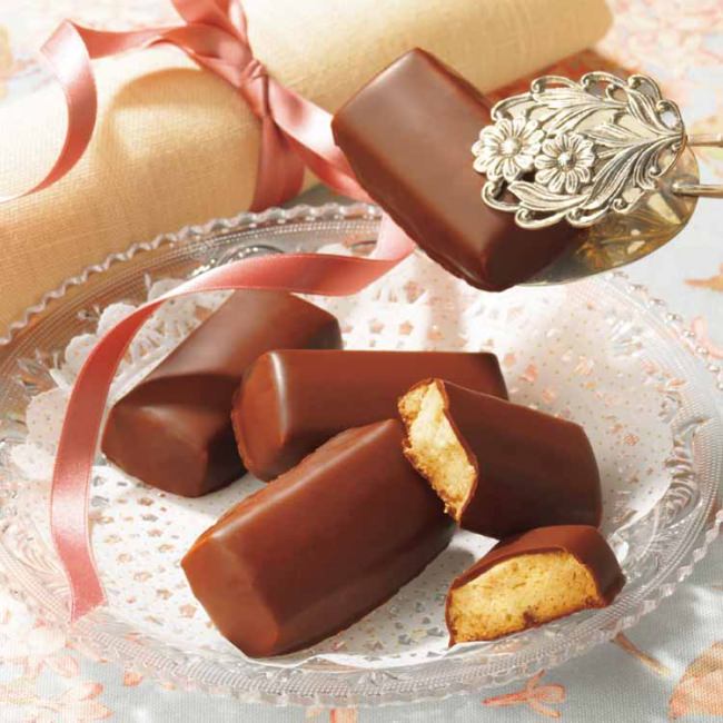 紅茶と相性が抜群のスコットランド伝統の焼き菓子「ショートブレッド」をロイズのレシピでアレンジ。サクサクの食感と、バターの豊かな香りを、すっきりとした甘さのチョコレートでコーティングしました。
