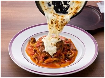 ・国産牛の粗挽きラクレットチーズハンバーグ