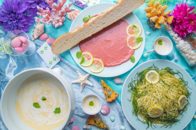 「不思議の国のアリス」の物語に登場するモチーフと、季節の食材を巧みに組み合わせて、昨年より様々なテーマで開催してきたこの“不思議なティーパーティ”が、この夏初めて“海”をテーマにしたSea Party仕様に!