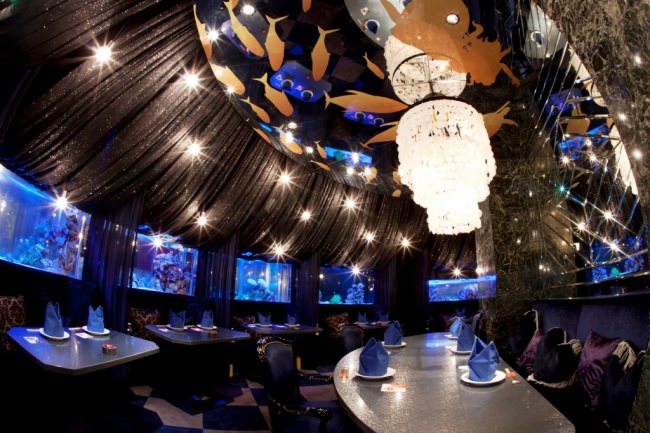 青く光り輝く水の中を、魚たちが生き生きと泳ぎ回る…その様子がひときわ神秘的なこの空間にインスパイアされ