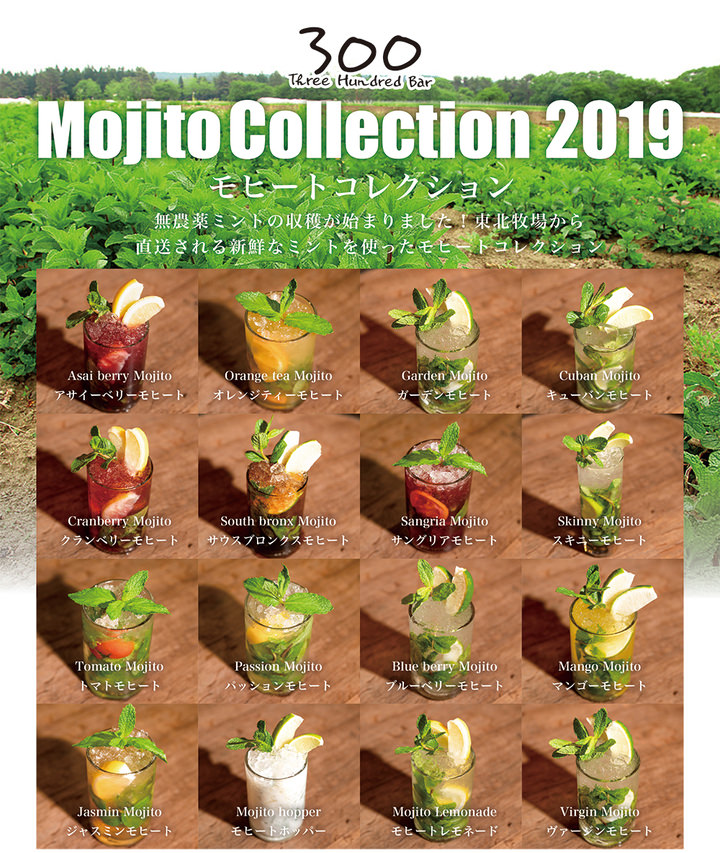 ●【告知】世界1のモヒートを提供する銀座300BAR、3店舗すべてにて、16種類のモヒートがお楽しみいただける「モヒート・コレクション2019」を提供開始いたしました。