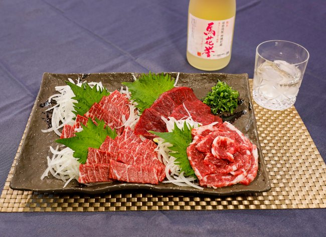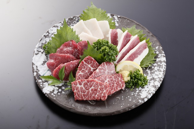 熊本名産の「馬刺し」にはフジチクの「ふじ馬刺し」を使用。