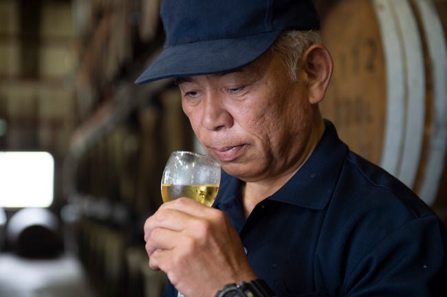 樫(オーク)の木でできた樫樽で熟成させて、琥珀色の輝きに仕上げた本格米焼酎を「馬花誉(うまかよ)」と名付けました。