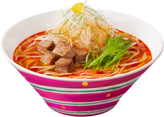 - カツオだしをベースに、柚子をきかせ、辣油を加えた、辛くてすっぱいスープ。すっきりとした酸味とコクのある辛味のバランスが絶妙です。