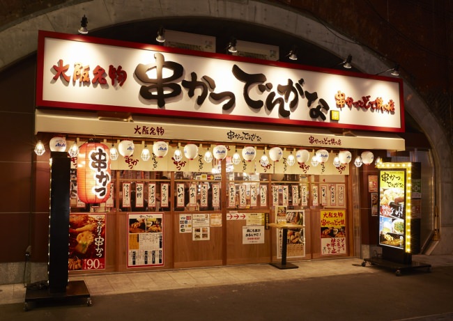 「串かつ でんがな」は、大人から子供にまで人気の大阪食文化の代表格“串かつ”を独自のこだわりやおいしさで再現した串かつ居酒屋として首都圏を中心に出店しています。でんがな自慢の串かつは山芋をブレンドした衣、独自開発したキメの細かいパン粉、厳選したオランダ産ラードの揚げ油を使い、外はサクッと、中はモチっとした食感に仕上げています。また、さっぱりとしながらコクのあるオリジナルの特製ソースが味を引き立てます。その他、大阪の串かつ店では定番の「どて焼き」や「牛肉吸い」など串かつ以外のメニューも豊富にご用意しております。