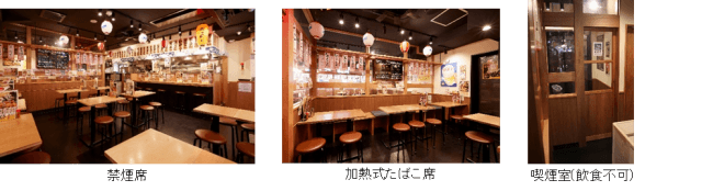 また、この取り組みの1店舗目として「串かつ でんがな 神田西口店」では、飲食スペースを壁等で仕切るなど、たばこの煙の流出を防止するための基準として厚生労働省が定める技術的基準を遵守し、禁煙席と加熱式たばこ席、さらに飲食不可の喫煙室を設置いたしました。