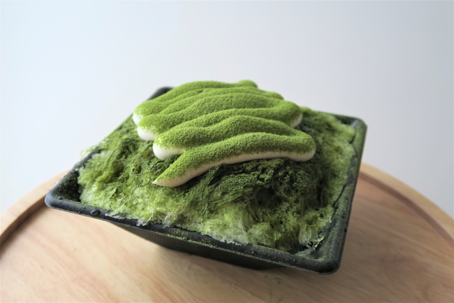 自社農園で育てた、牧之原産の深蒸し茶を100%使用した大人味のかき氷。