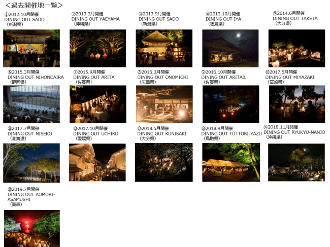 2012年に新潟県佐渡市から始まり、これまでに16回実施。今後も時代の先端をゆく料理人やクリエイターたちが、地域の人々と一体となって、各地の新しい魅力を引き出していきます。