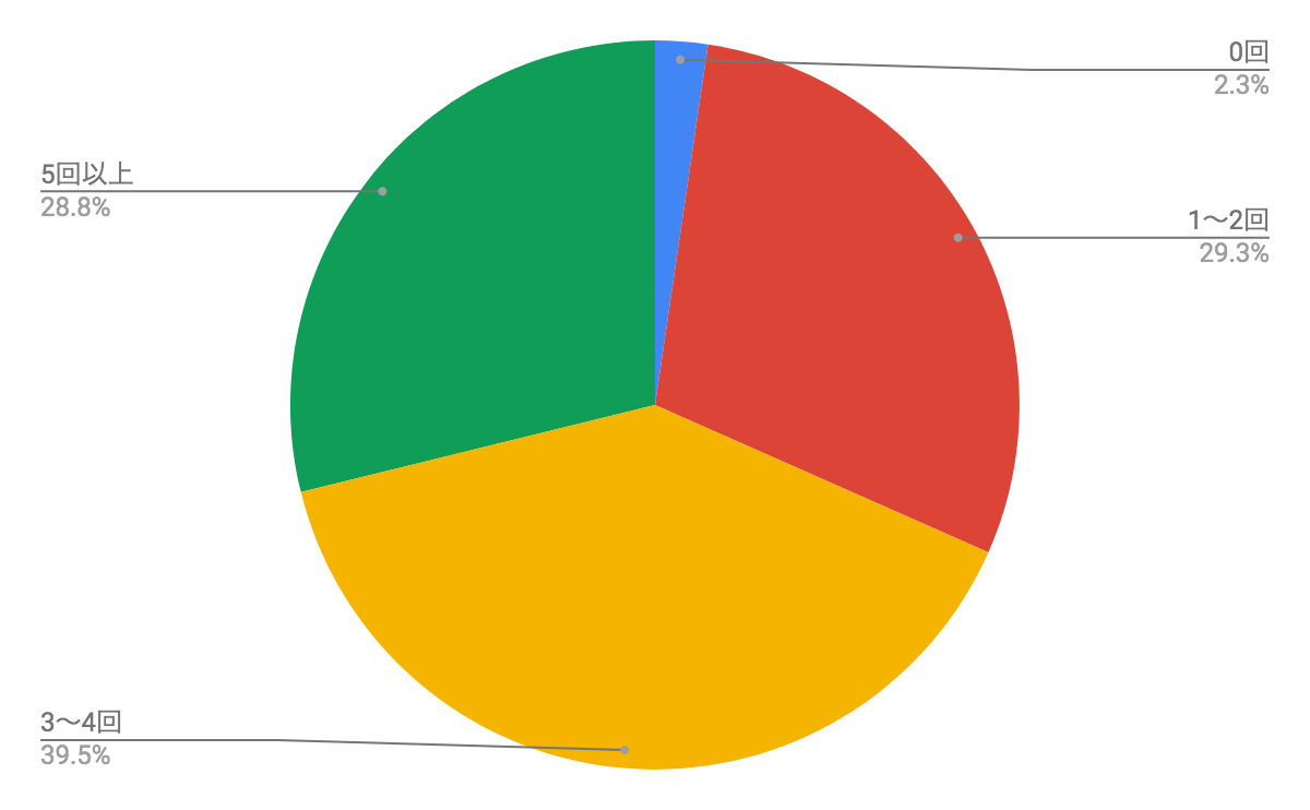 1ヶ月の外食頻度は比較的に高く3回~4回程度外食をしている人が多いことがわかりました。多い方なら毎日外食しているというご家庭も。全体的に見てもほとんどの家庭で週に1回以上は外食している計算です。