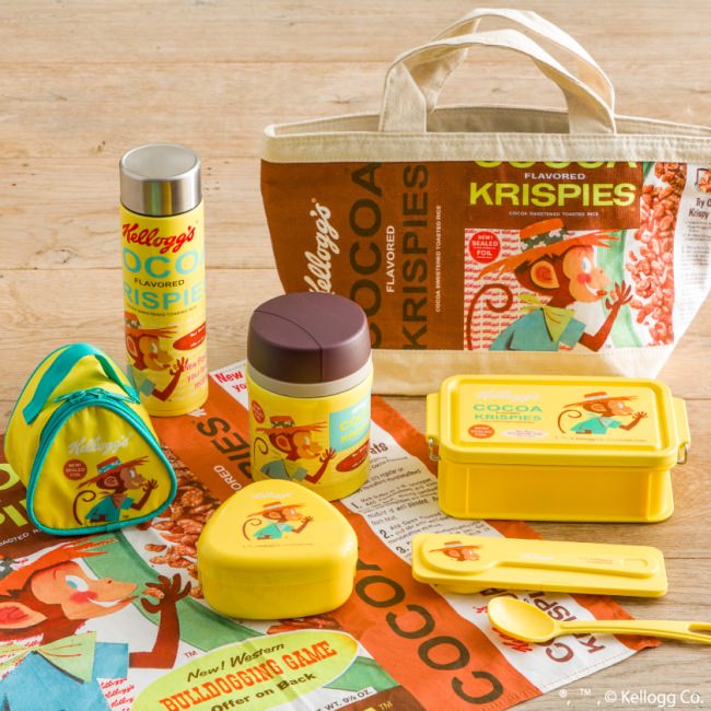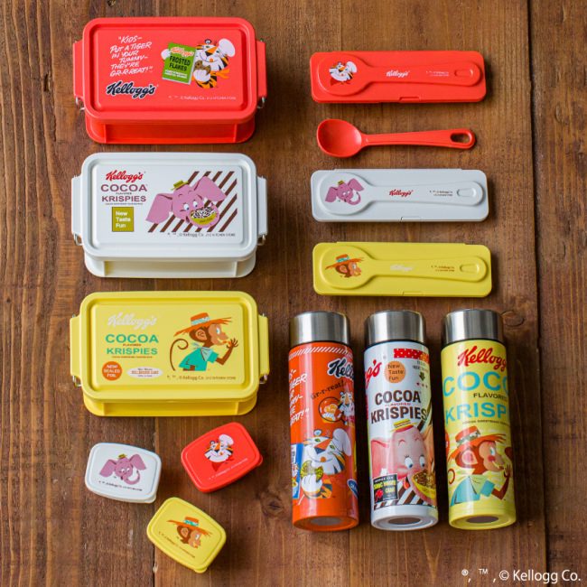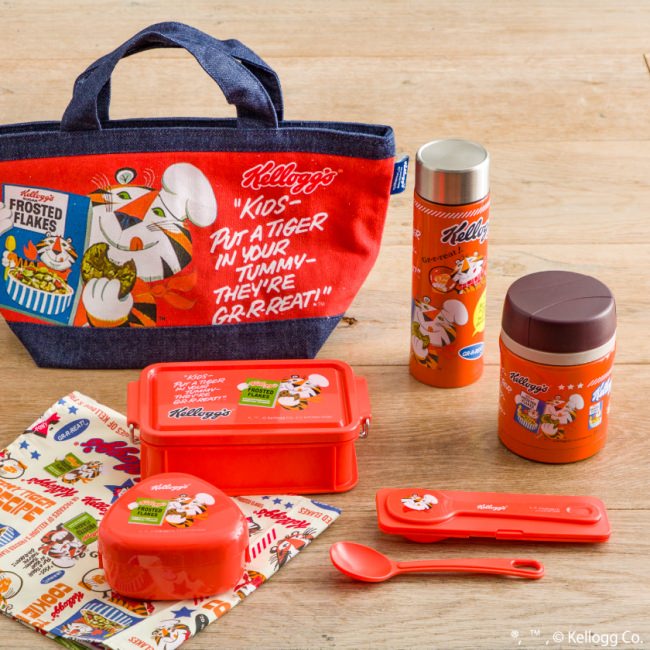 2019年3月に続く第二弾となる今回のコラボレーションでは、ランチボックスやランチクロス、ステンレスボトルなど、全32種にわたるバラエティー豊かなアイテムが展開されます。第一弾でも好評だったケロッグを代表するトニー・ザ・タイガーのほか、「チョコクリスピー」でおなじみのココくん、「チョコワ」の初代キャラクターのゾウのメルビンが初登場!ケロッグの人気キャラクターが、おしゃれなビンテージ・デザインにて登場します。