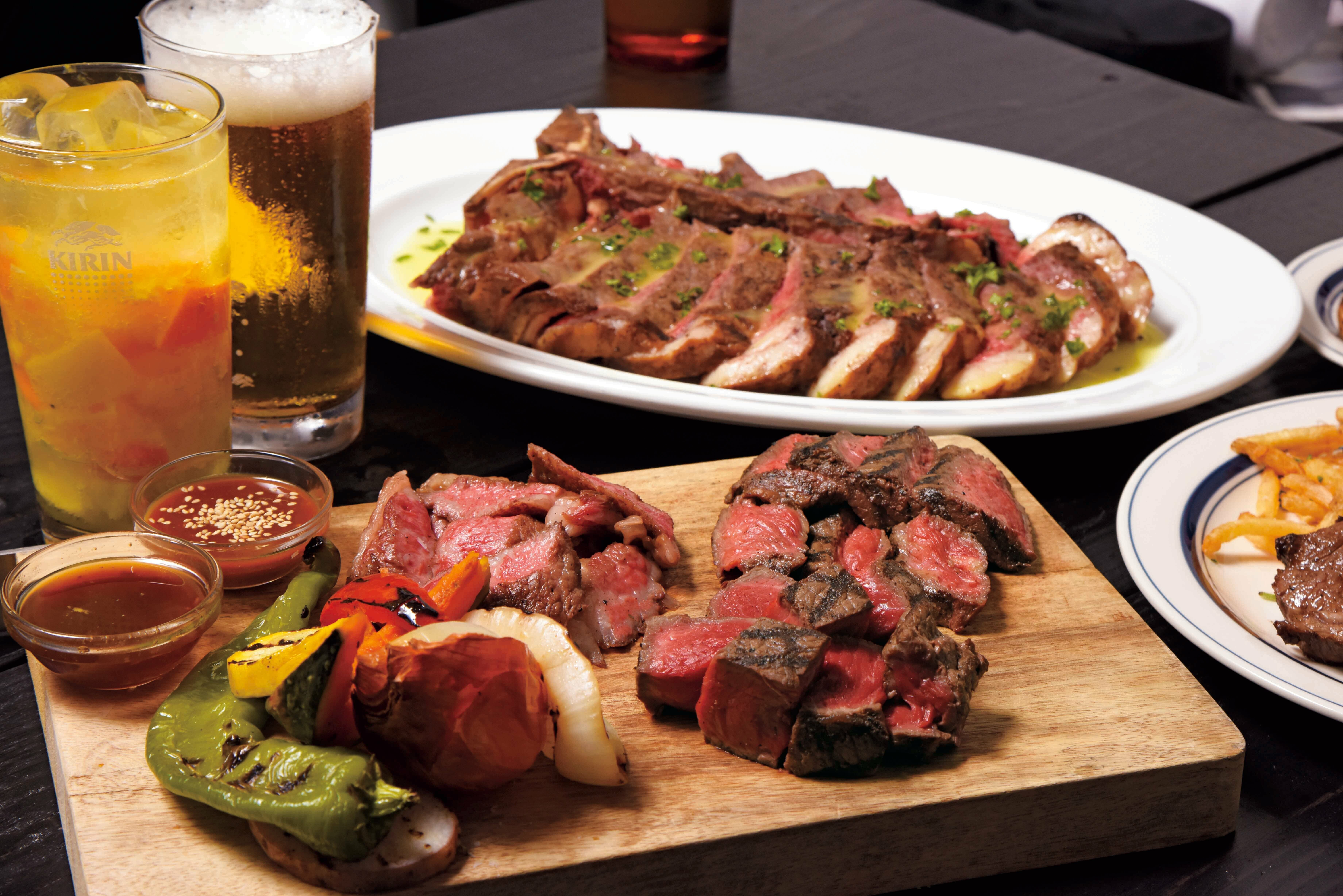 美味しいお肉とアルコールが気軽に楽しめるダイニングバル。自慢のTボーンステーキは見た目も味も迫力満点。