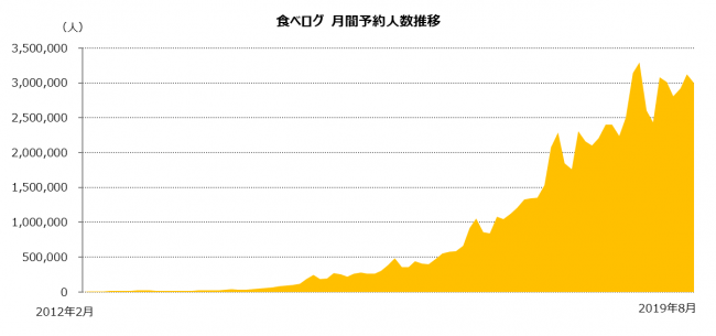 株式会社カカクコム(本社:東京都渋谷区 代表取締役社長:畑 彰之介)が運営するレストラン検索・予約サイト「食べログ(https://tabelog.com/)」は、レストランのネット予約サービスにおいて、2019年8月の月間予約人数が約299万人となったことをお知らせします(※)。