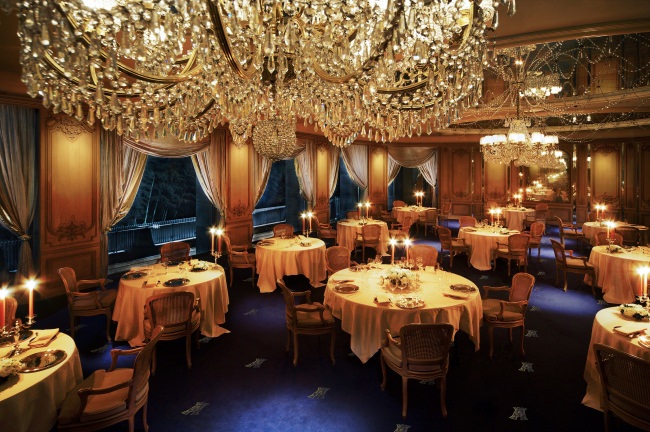 ブルボン王朝のシンボリックな濃紺に彩られたエントランスに、”三皇帝の晩餐”として語り継がれる歴史的食卓のディスプレイが座すエントランスホール、ルイ15世のロココ時代を表現した優美なダイニングルーム…。