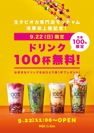 浅草店のオープンを記念し、オープン当日は先着100名様1人1杯無料で提供致します。