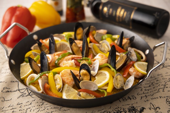 バレンシア地方発祥 スペインを代表する人気のライス料理「パエリア」。海老・浅利・烏賊と魚介の旨味たっぷりのパエリアはシェフの一押しです。ディナーは更にムール貝がのって華やかに登場!