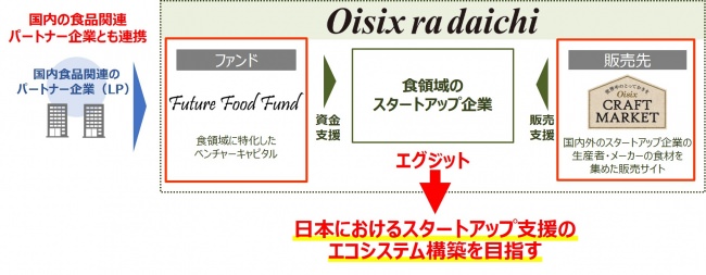 スタートアップ企業を成長させ、事業を加速させる仕組みの総称をエコシステムと呼びます。当社では「Oisix クラフトマーケット」での商品販売だけでなく「Future Food Fund」による出資や大企業とのマッチング支援など、スタートアップ企業の速やかな事業拡大にむけた周辺環境の整備も行うことで包括的な事業支援を行ってまいります。(「Future Food Fund」サイトURL:https://www.oisix.com/sc/futurefood)