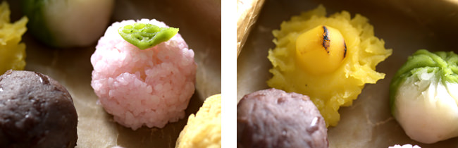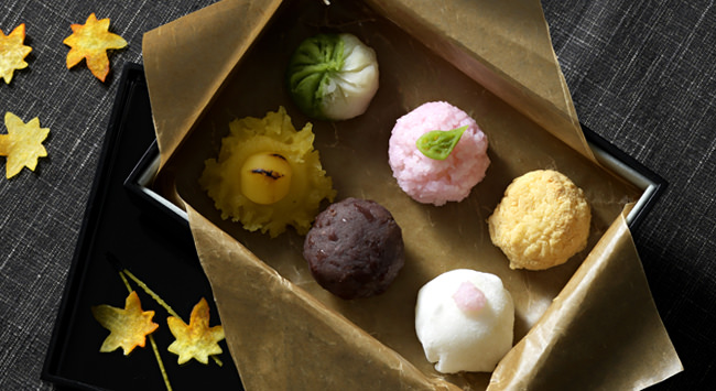 かぼちゃのミルフィーユ / 抹茶のさつま芋シフォン / 栗のショートケーキ / 栗パイ / 和栗のモンブラン / 紫芋のモンブラン / スイートポテト / かぼちゃのブリュレ / ゆかりゼリー / いちじくのコンポート / 胡麻クッキー / バニラクッキー / 道明寺包み / 抹茶と白の茶巾 / 白玉に安納芋のきんとんのせ / 大学芋(黒胡麻・抹茶) / 自家製あんこの冷しぜんざい / コーヒーと栗の求肥包み / 自家製和三盆わらび餅 / 三色蕎麦(茶・梅・柚子)/ 軽食 ほか