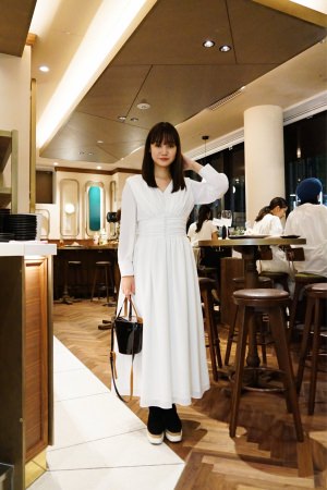 西本早希は自身のインスタグラム(@saki1022)で「パフェ日本酒は日本酒を綿あめにかけて溶かし黒蜜と抹茶をかけて食べ、パンケーキは剥がすとソースが広がる映え要素満載。ほかにもカフェなんだけどおつまみプレートもあったり、普通に日本酒も飲めたり!(最高すぎ)この日は白ってドレスコードがあったので@kaene_officialの白ワンピースで」と紹介。