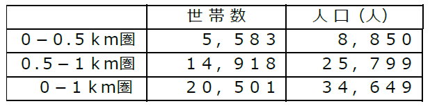 ・店舗から1km圏内は単身世帯比率が59.1%、2人世帯比率は21.5%と全体の約8割が少人数世帯です。