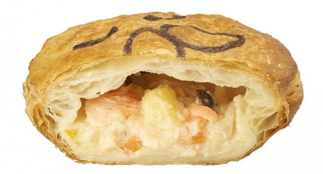 じゃがいもやサーモン、ぶなしめじなどの具材のうまみと2種類のチーズ(チェダー・ゴーダ)のコク。ほっこり仕上げたクリームシチューをパイで包みました。パイの顔は、クリスマスにちなみ”サンタのひげ“をイメージしています。