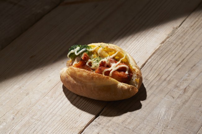 ソフトなフランスパンに、タンドリーチキンとかぼちゃのサラダを挟みサックリと焼き上げました。