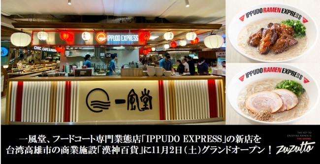株式会社力の源ホールディングス(本社:福岡市中央区、代表取締役社長:河原成美)傘下の台湾一風堂股份有限公司(本社:台湾)は、2019年11月2日(土)、「一風堂」のフードコート専門業態店「IPPUDO EXPRESS」の新店「IPPUDO EXPRESS 台湾 高雄漢神本館店(イップウドウ エクスプレス タイワンカオシュンハンシンホンカン)」をグランドオープンいたしました。