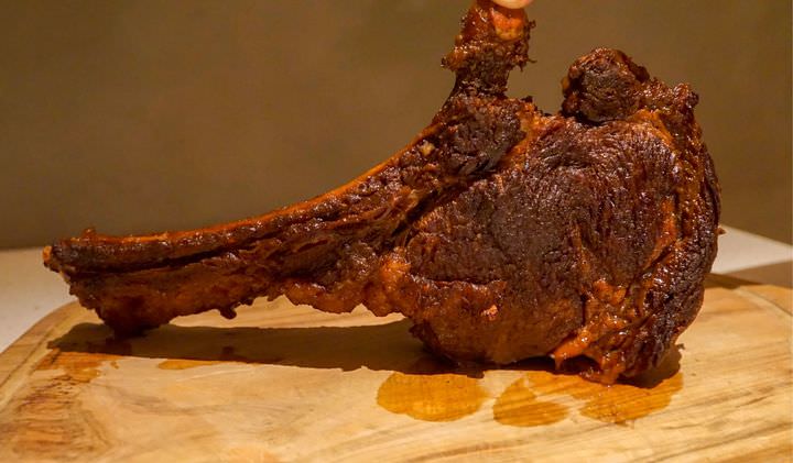 ・トマホークのコンフィのカリカリ焼き 5種の薬味とともに