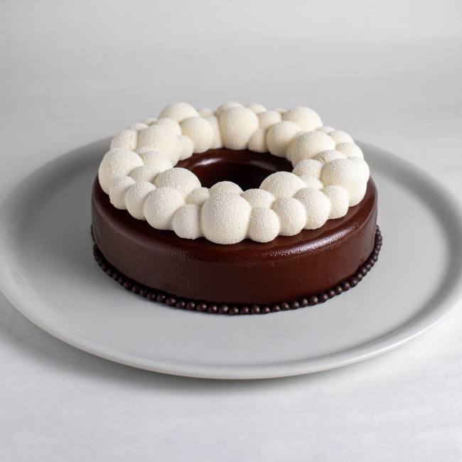 フランスの老舗チョコレートブランド「ヴァローナ」のチョコレートを使用した濃厚なチョコレートムースの中に、香り高いアールグレイやパッションフルーツの酸味が効いた、大人な味わいの「THE CHOCOLAT(ザ ショコラ)」と、暖炉の炎をイメージしたフォルムに、ガスパチョのジュレやイチゴとトマトのムース、ピスタチオのビスキュイを重ねた、爽やかな甘酸っぱさが特徴の「CANDLE(キャンドル)」の2種類をご用意しております。