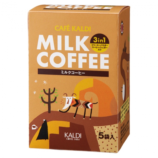 カルディコーヒーファームの店頭でサービスしているコーヒーの味をイメージしたミルクコーヒーです。砂糖、ミルクが入った3イン1タイプのコーヒーで、お湯に溶かすだけで簡単にお召し上がりいただけます。子どもから大人まで楽しめるやさしい味わいです。
