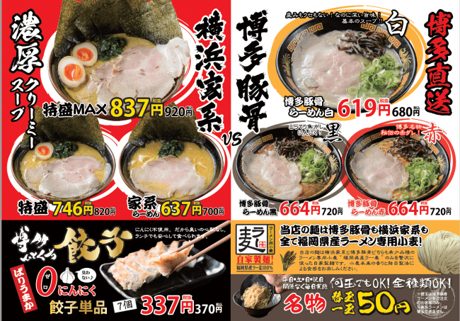 福岡では直営の博多豚骨ラーメン専門店博多三氣を展開していますが、子会社の博多製麺処(はかたせいめんしょ)は、横浜家系ラーメンのスープや麺を全国のラーメン店に提供しており、出店ノウハウを持ち合わせています。