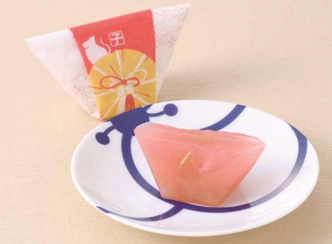 なめらかな口あたりに仕上げた淡い色合いの紅羊羹に、白小豆かのこを浮かべました。干支の意匠が愛らしいお菓子です。
