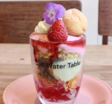 〈ソルトウォーターテーブル〉いちごとピスタチオのパフェ 1,100円/6階
