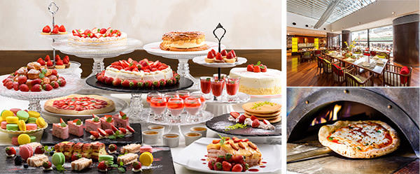 店内のピザ窯から焼きたてを提供する苺とカスタードのピッツアや、スープのようにシロップをたっぷり使った苺のズッパイングレーゼなど春を彩るドルチェが登場。パスタやオムレツグラタンなど、軽食も含め約30種類をお好きなだけお楽しみいただけます。