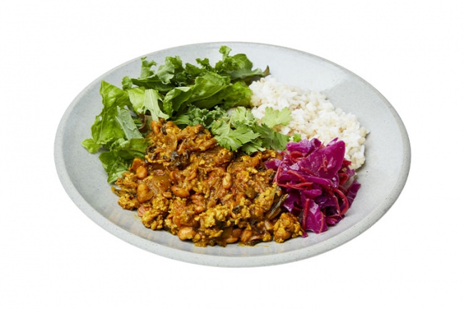 発酵した【高菜】の酸味と旨みに加えて、日本古来の発酵食品【ドライ納豆】の香りと食感がおいしさの決め手。ライスは、食物繊維やカルシウムが豊富な大麦入りの玄米ごはんで栄養素のUPを叶えました。クミンやチリパウダーなどスパイスが程よく香り、食べ進めるごとに後を引くクセになる味。美味しいのはもちろん、栄養価が高く身体が喜ぶバランスのいい良いメニューが完成しました。