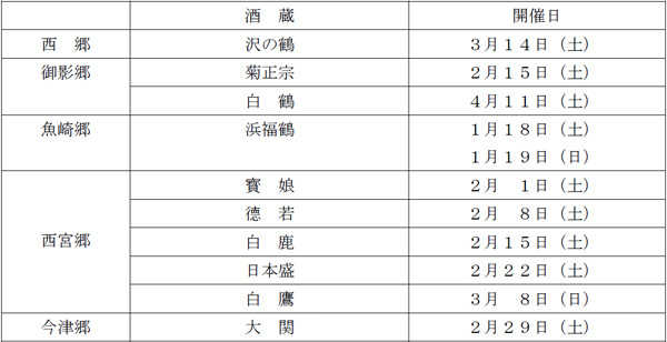 ◆「灘の酒蔵」蔵開き等の予定について◆