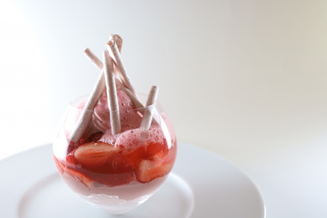 グラスに折り重なった各層にはそれぞれの個性があり、食べ進めることで混ざり合い新たな味わいを生み出すため、食べ方により印象が異なります。最後の一口を終えた後もしばらく続く苺とローズの甘く可憐な香りに包まれるひとときは、忙しい毎日を頑張る“自分への癒しのご褒美”としてもおすすめです。