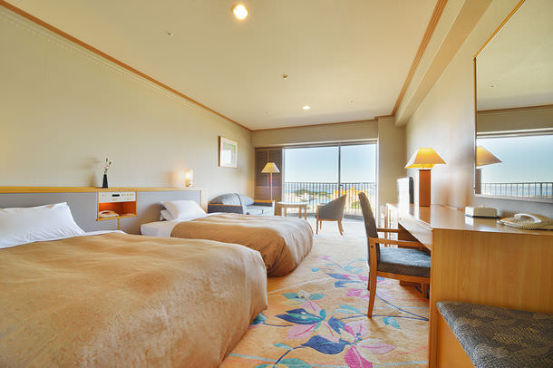 青い海を一望できる小高い丘の上にある「白浜古賀の井リゾート&スパ」。全室オーシャンビューの広々としたお部屋はご夫婦やカップルから大変ご好評いただいております。天気や条件が良ければ、水面を照らす月明かりや、大きな窓から眺める日の出など、様々な眺望が楽しめるのも人気の一つ。日没後は庭園にて1年中楽しめるプライベートイルミネーション《イルミナスオーシャン》を散策しながら幻想的な空間をお楽しみください。