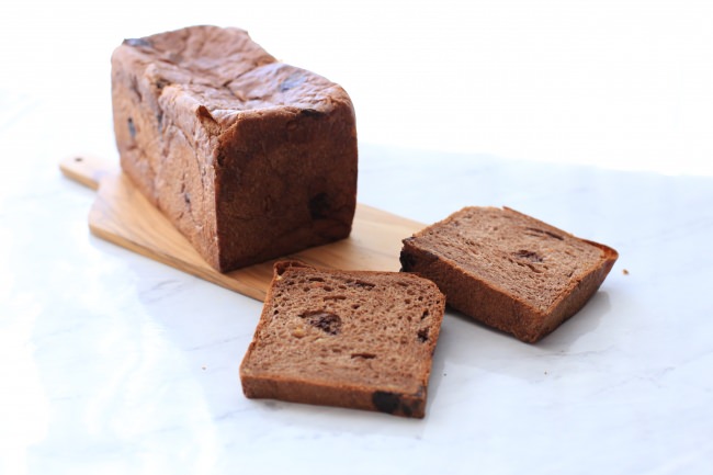 究極のチョコレート食パン『プレミアムショコラ』は、発酵バターを贅沢に使用した しっとりとしたチョコレート生地に、グランマルニエとオレンジフラワーウォーターで風味づけしたザク切りのオレンジと、サルタナレーズン、チョコチップがアクセント。そのままでもスイーツのような味わいが楽しめ、トーストするとまたひと味違ったチョコレートの香ばしさが楽しめるプレミアムな食パンです。