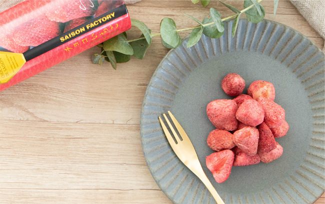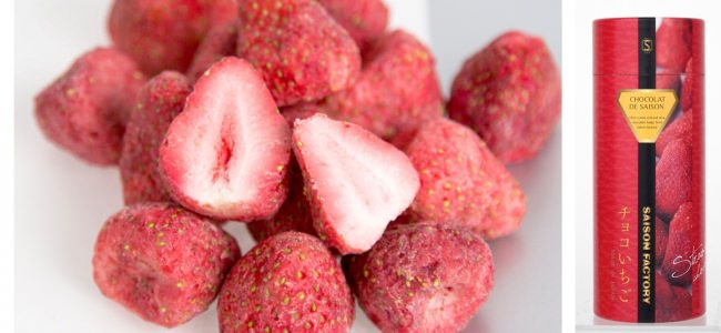 まるごとフリーズドライ加工したいちごに、独自の製法でホワイトチョコレートをしみ込ませました。爽やかな