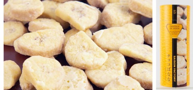 フィリピン産のバナナをフリーズドライ加工し、独自の製法でホワイトチョコレートをしみ込ませました。香り豊かなチョコレートと、バナナの食感が絶妙なバランスの新食感スイーツです。