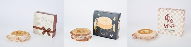 左から 福島県:バウムラボ樹楽里/自然樹 もち粉 京都府:IKARIYA BEIKA KYOTO/米粉バウム ふわふわ 香川県:パティスリー サンファソン/バオバブの木