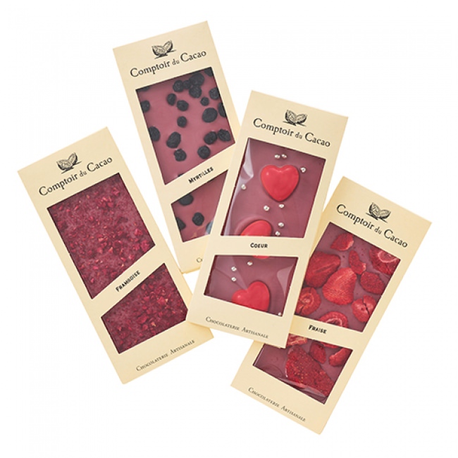 1.「コントワール・ドゥ・カカオ」から華やかなルビーチョコレートが入荷しました。ドライフルーツやチョコレートなどをそのままトッピングしたビジュアルの可愛さも魅力。自分用にはもちろん、手土産やちょっとしたプレゼントにもおすすめです。コントワール・ドゥ・カカオ グルメバー ルビー チョコレート 各698円