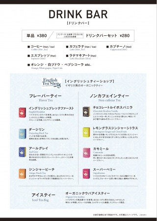 全店舗、コーヒーマシンの入れ替えを完了し、ドリンクバーでカフェラテ・オーガニックティー・各種炭酸ドリンクもご利用いただけるようになりました。2月5日からは単品のドリンクバー380円(税抜)が全店に登場。平日ランチでは、なんとドリンクバーセットが100円(税抜)でご利用いただけます。