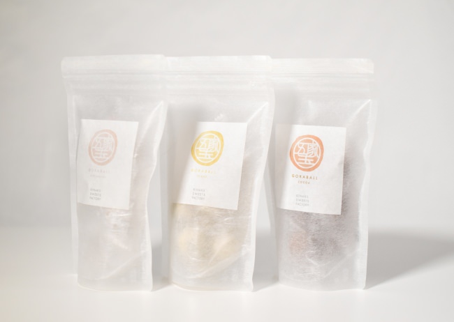 そんなきな粉を沢山使ったお菓子が、五家宝や、きなこひねり、きな粉棒があります。 そして今回リリースの 「五家玉 GOKABALL」は きな粉プラス、カカオ(ポリフェノールを多く含み、体のサビを防ぐ効果がある)やアーモンド(ビタミンEなどが豊富で、若返り効果に期待)を加えすべて個包装にしました。