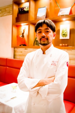 新井 亮(Ryo Arai)1983年生まれ、東京都出身。大学時代に居酒屋で初めて料理を経験し、「自分が作った料理で誰かが喜んでくれる」仕事に感動し洋食店に就職。その後イタリアンと出会い、「カ アンジェリ」などを経て2008年にジローレストランシステム株式会社に入社。リストランテを中心に腕を磨き、2019年3月に「ダノイ高輪」副料理長に就任、同年10月に料理長に就任する。五感で感動していただける料理をモットーに、ひと皿ひと皿に心を込める。