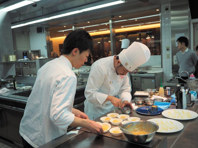 2019年11月25日に開催された「第10回 全国イタリア料理コンクール」決勝戦にて、ダノイ高輪の新井シェフが特別賞(DE CECCO賞)を受賞しました。これを記念して、3月1日より「シェフのおまかせコース」10,500円(税抜)内のパスタ料理の1皿として期間限定で受賞作「海の宝石たちでドレスアップしたリングイネ 帆立のクロカンテとディアマンテ・ネロ 青ゆずのフィオーレ・ディ・マーレ」※をご提供いたします。イクラ、ウニ、ホタテを贅沢に使ったソースで表現した深い海を想起させるカルボナーラを是非お試しください。