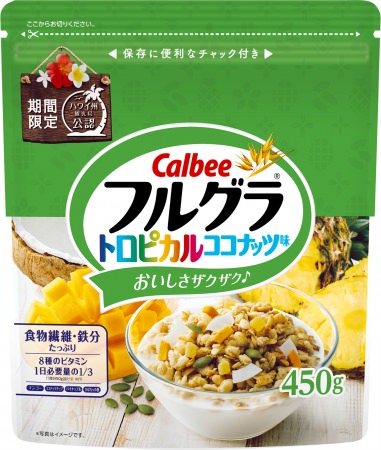 カルビー株式会社(本社:東京都千代田区、代表取締役社長:伊藤 秀二 以下、カルビー)は、シリアルブランド売上げNo.1(※1)の「フルグラ®」から、今年で登場から16年目となる春夏の定番商品『フルグラ® トロピカルココナッツ味』を2020年2月17日(月)より全国で期間限定発売(2020年8月中旬終売予定)します。本商品は、ココナッツのコク深い香りと味わい、食感にこだわり、トロピカルフルーツをトッピングした“南国風のグラノーラ”で、カルビー唯一のハワイ州観光局公認商品です。※1 インテージSRIデータ:シリアル2019年1月~2019年12月累計販売金額