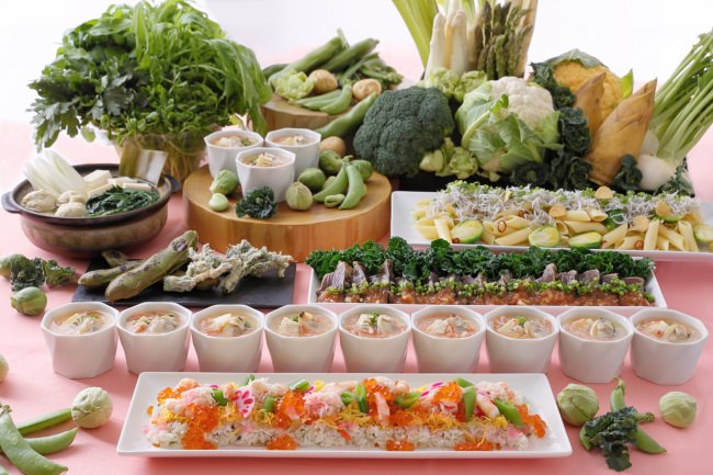 春野菜など旬の食材を用いた料理と人気の目の前で焼き上げるビーフステーキが堪能できるブッフェは、旬の食材をおいしく食べていただきたいとの思いで開催します。