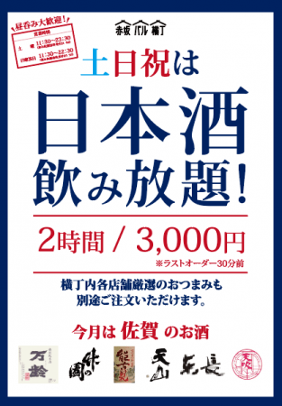 赤坂バル横丁で2月15日(土)より毎週土日+祝日限定で、