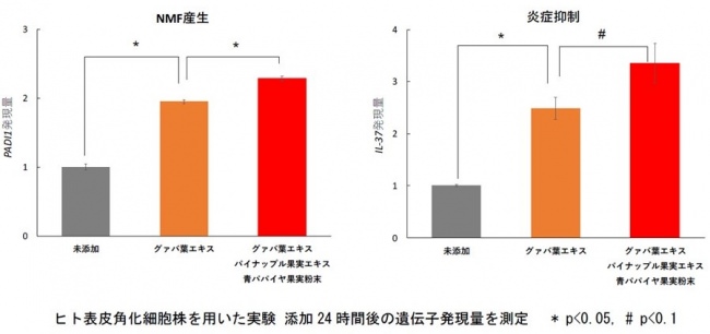 日本メナード化粧品株式会社(名古屋市中区丸の内 3-18-18、代表取締役社長:野々川 純一)は、様々なフルーツ関連の素材の中からグァバ葉に肌のバリア機能を高める効果があることを発見しました。さらにパイナップル果実、青パパイヤ果実の素材を合わせることで、その効果が高まることを確認しました。これらの素材を組み合わせることで、肌のうるおいを高める食品への応用が期待されます。